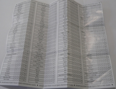 Design: Originally, the manual was planned to be a little booklet, but the need for the Point Value Quick Reference Guide to be on one large sheet meant that the manual also had to be in this format. As a result, the manual has now been designed to fold up neatly into a rectangle the same size of all the previous instruction manuals.